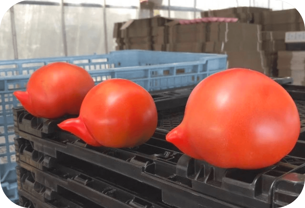 曲がっていたり傷がついてしまったりしていて、味には問題なくても商品として販売できない規格外のトマトも使用。